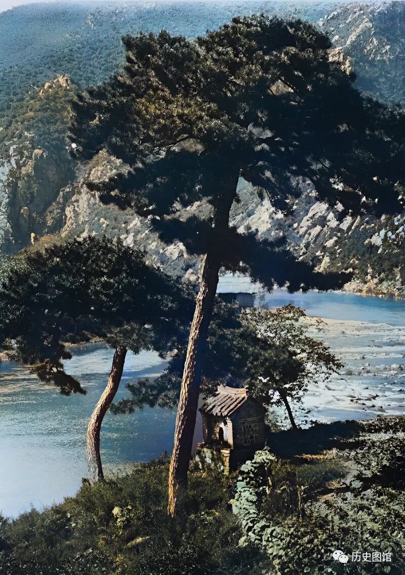 这张照片,拍摄于本溪南芬下马塘附近,这条河叫细河。河道在这里形成了一个河湾,水面宽阔,两岸都是高山。在近处,几棵松树的下面,有一座小庙。应该是当地百姓经常到这里来祭祀。