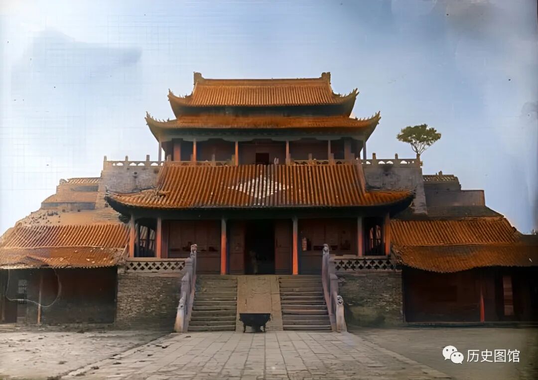 这是当时开封的一座道观,由于年代久远,根据照片难以知晓这座道观的名字。但是,这座道观气势雄伟,建筑错落有致,感觉不一般。