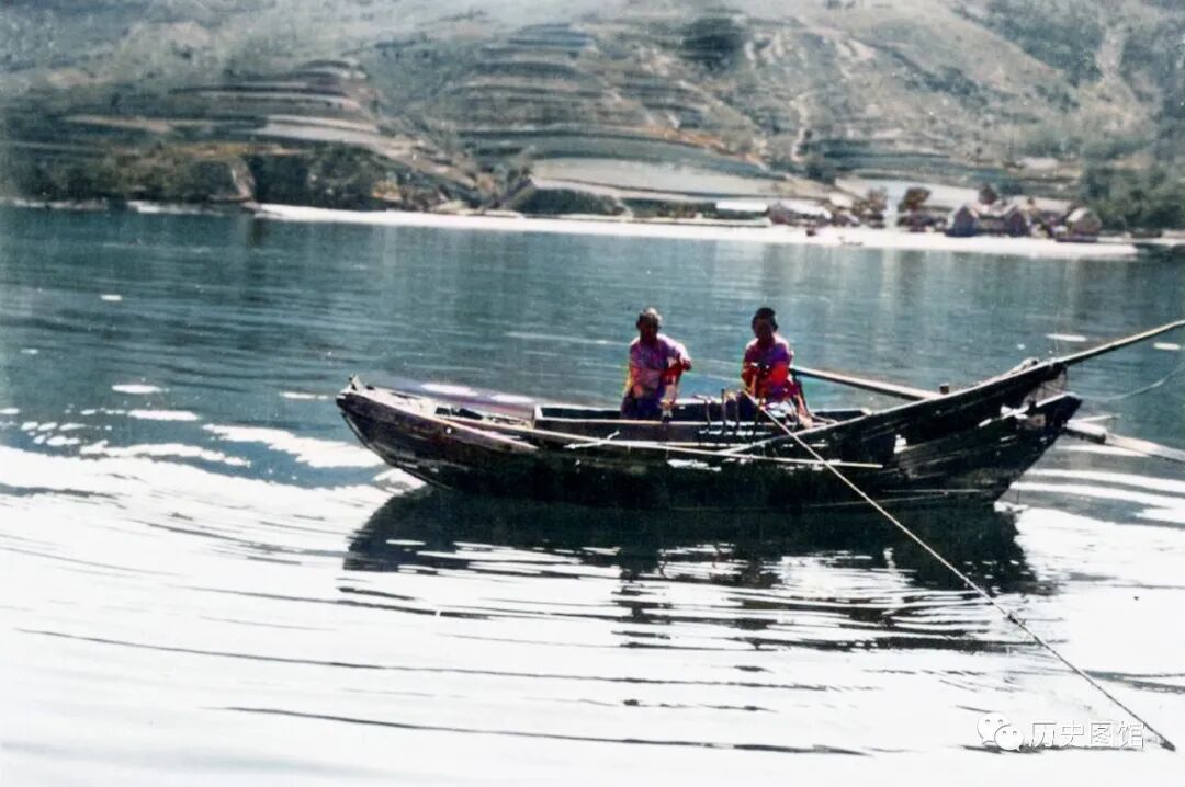 两名船工在忙碌之后,坐在小船上休息。照片拍摄于1942年。