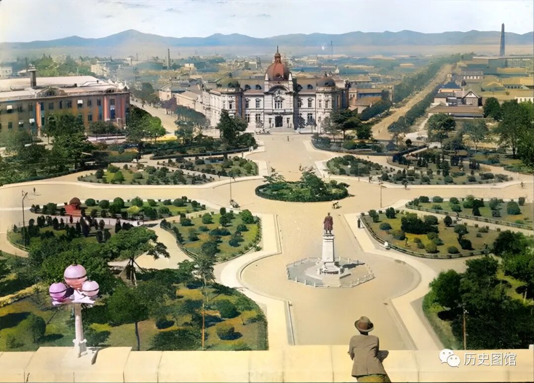 这座十分漂亮的广场,就是著名的大连中山广场。该照片拍摄于1929年。