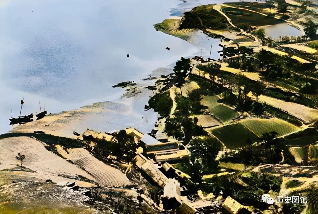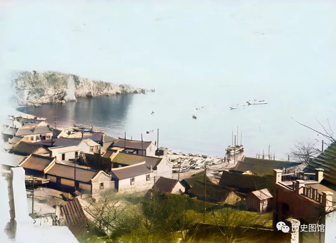 这是1930年的大连老虎滩。远处,水天一色。近处,有很多房舍,犹如一幅画。