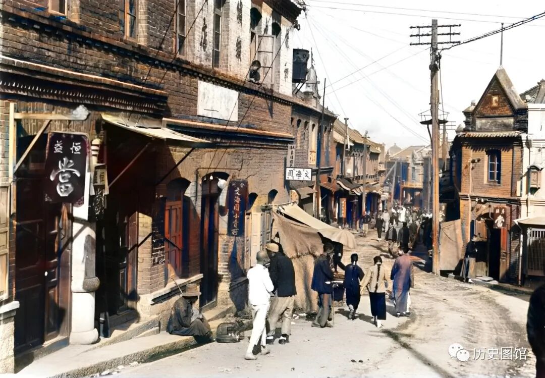 这张照片拍摄于大连西岗子,这条街上住的都是中国人。因为是冬天,人们都穿着棉衣。