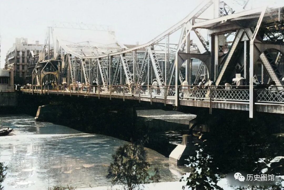 1937年,天津海河上的万国桥。之所以叫万国桥,是因为它连接着各国的租界。万国桥位于当时的法租界入口,由法租界工部局修建。