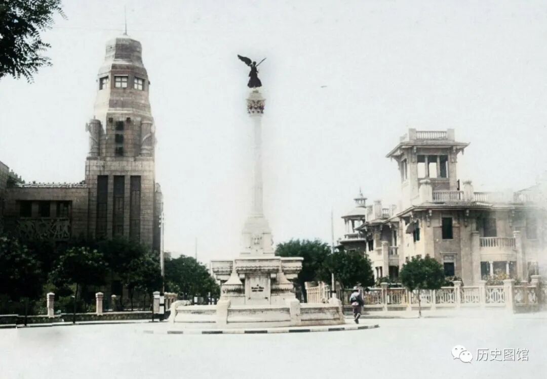 1937年的意大利租界,这是当时的马可波罗广场。1902年修建,面积771亩。广场正中有一座和平女神像,是为了纪念第一次世界大战胜利。