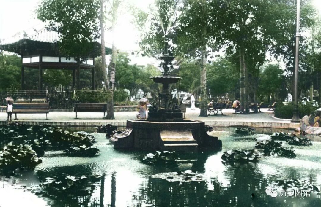 1937年,日本人建在天津日租界的大和公园。公园具有典型的日本园林风格,建有凉亭、竹门、喷水池等景点。当时,日租界对中国人入园作出限制,每天下午6点才可入园,有明显的歧视。