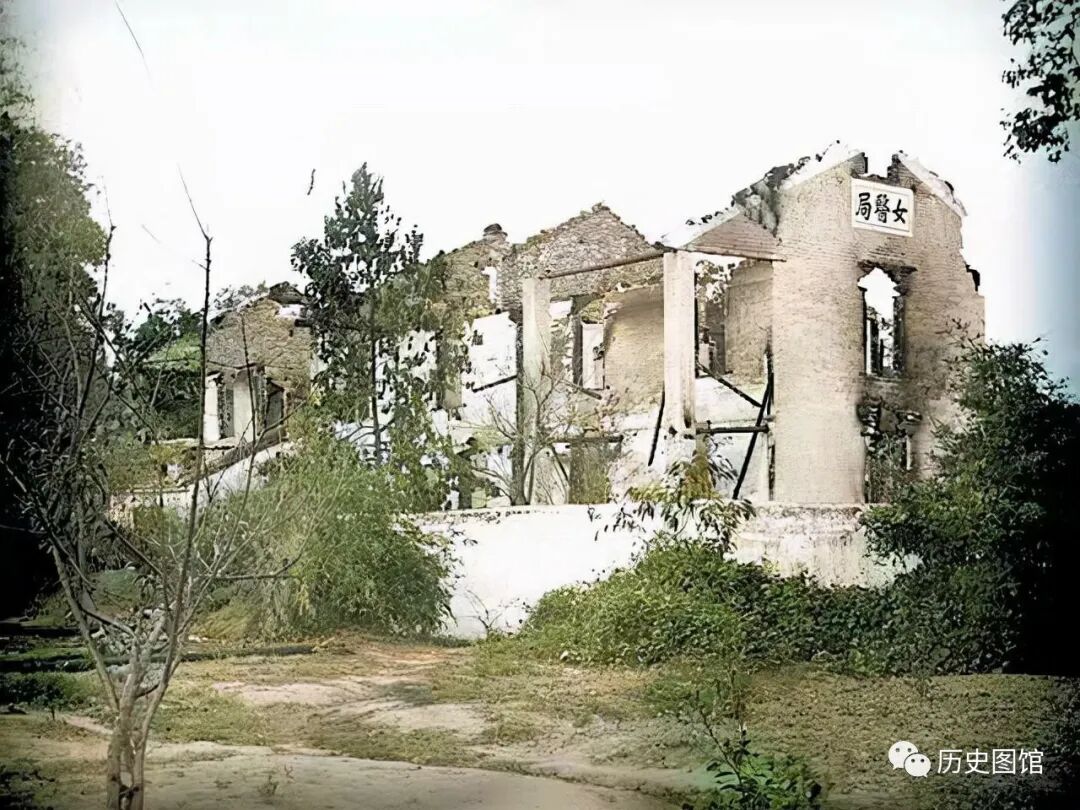 这张照片也拍摄于连州,是一处被废弃的建筑,门楣上写着“女医局”,也就是当时的妇女医院的意思。后来,在一场大火中被焚毁。
