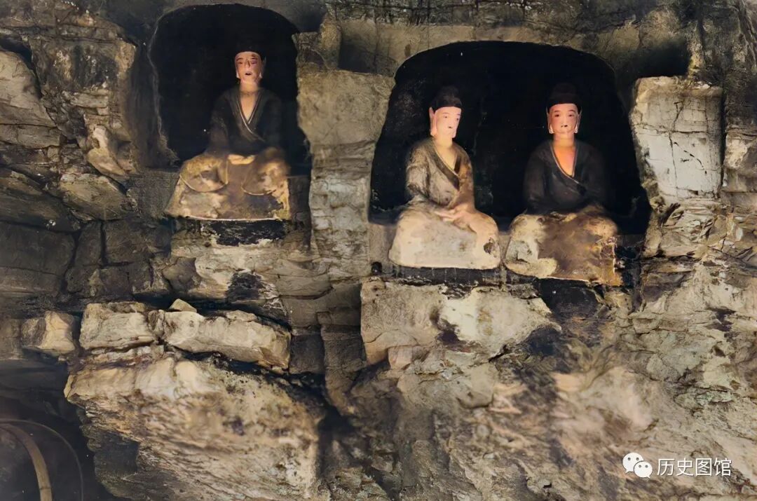 这是济南一座山上的小型石窟,在岩壁上开凿的石窟里,摆放着几尊佛像。佛像为泥塑,表情和服饰刻画得栩栩如生。
