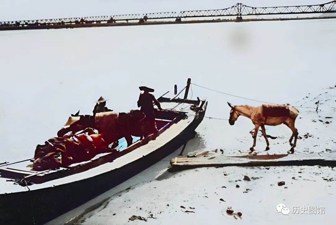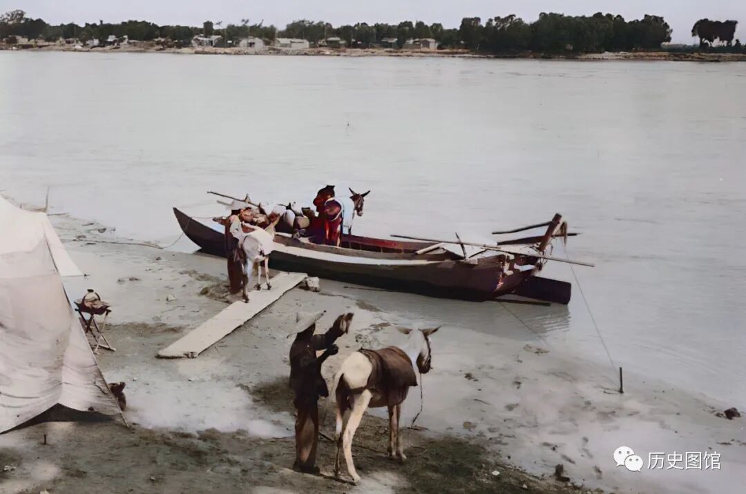 当时的黄河,水宽浪急。人们要想到达河对岸,都得乘坐这种渡船,渡口的小船有专人负责,驾驶小船将乘客运送到河对岸。
