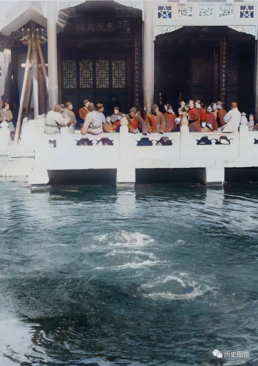 40年代,游人凭栏观赏趵突泉。世人皆知,济南除了有水有山,最美的便属天下闻名的趵突泉了,该泉为济南三大名胜之一。