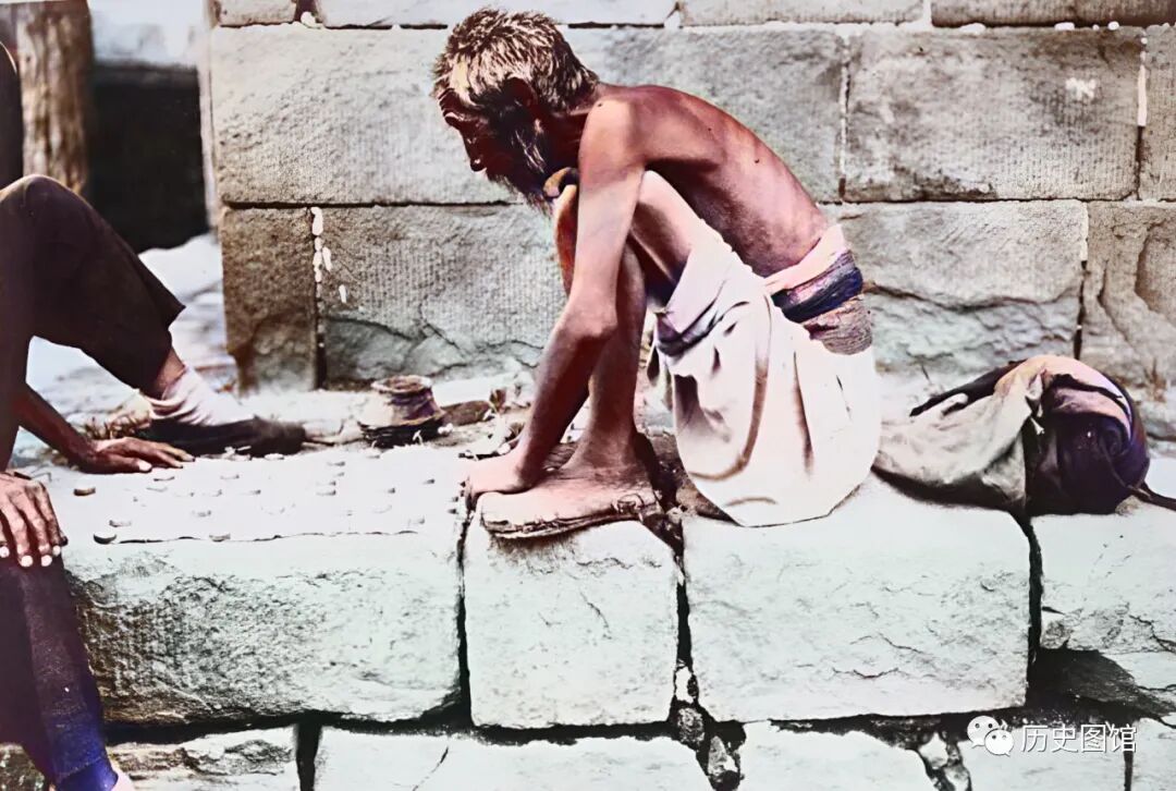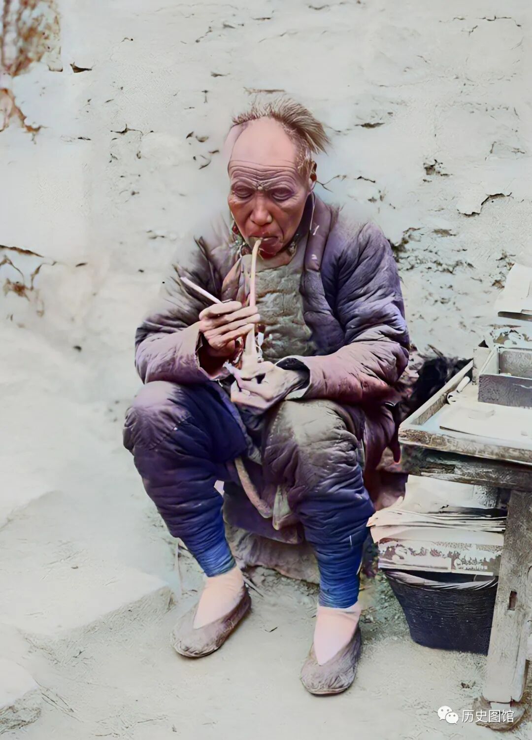 在街边,有一位老人坐在墙根下的石头上。他身体消瘦,满脸皱纹,头发也很稀疏。那时候的人们,生活没有现在富足,闲暇之余吸上几口水烟就是最大的乐趣了。