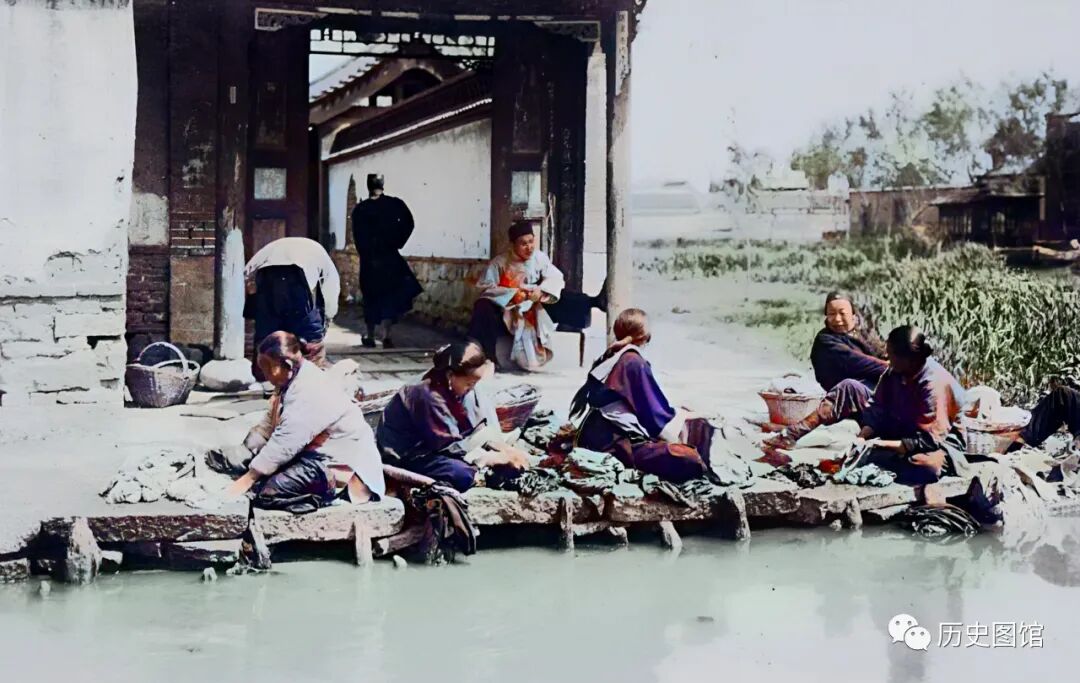 这是济南郊外的一个小村落,房子前面就是清澈的溪水。几名妇女正坐在水边洗衣服。济南泉水众多,水资源丰富,像这样的小溪在当地很常见。