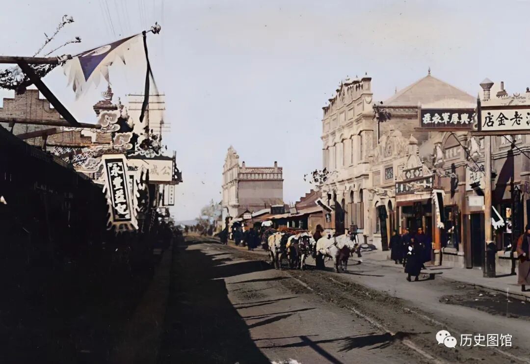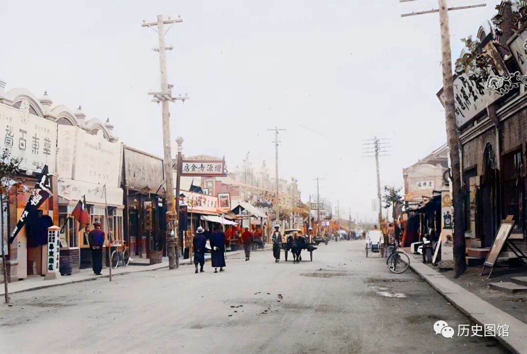街上,能看到不少行人、马车和骑自行车的。可见,当时的敦化城内,商业氛围浓郁,繁华热闹。