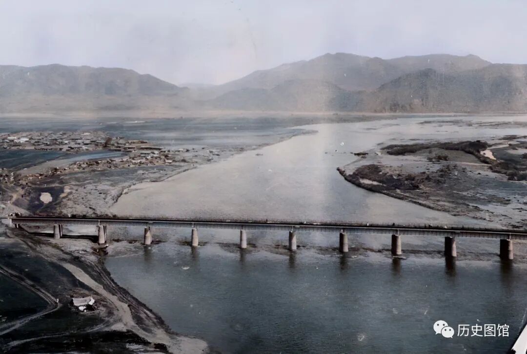 这是一座跨国铁路大桥,位于灰幕洞与朝鲜咸镜北道南阳的图们江上。该桥由敦图铁路通往朝鲜罗津港。照片拍摄于1933年。