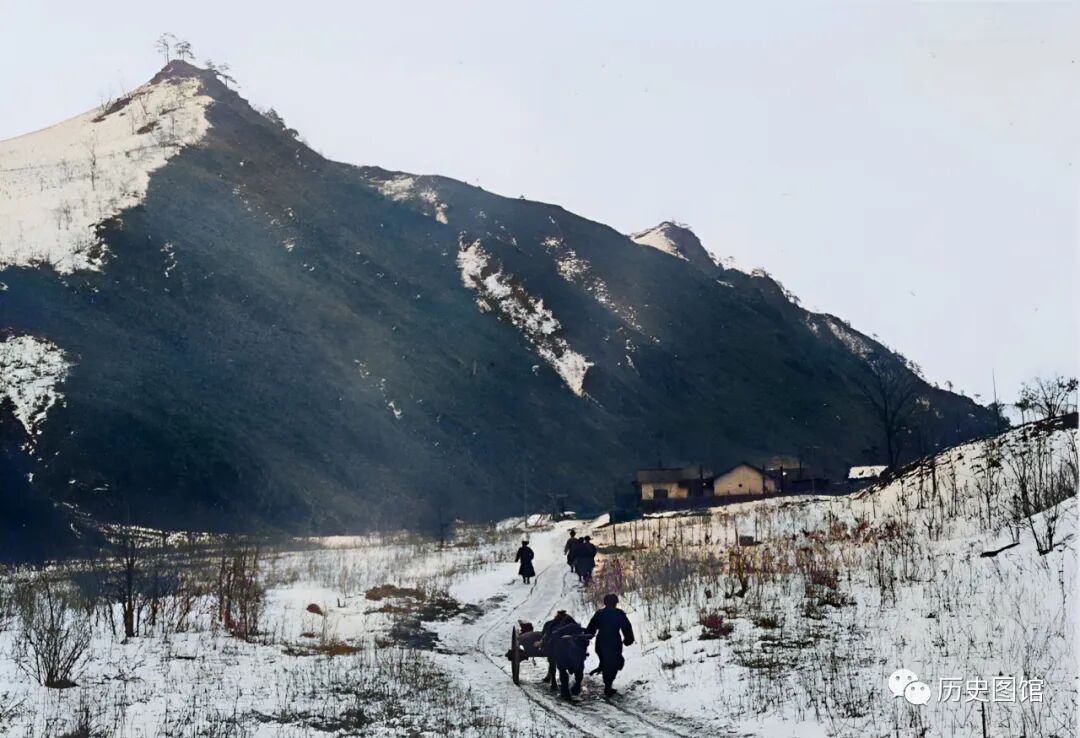 1932年,龙井境内的天宝山下,一名男子正赶着马车行走在冰天雪地里。不远处的高山,就是天宝山,山峰高耸,植被茂密。在山下,有一个小村庄。