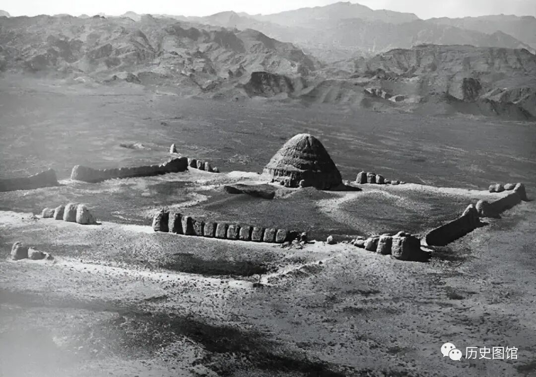这就是位于贺兰山脚下的西夏陵,它是西夏历代帝王陵以及皇家陵墓。巨大的塔状凌锥形夯土台叫陵台,高约20米。西夏陵是中国现存规模最大、地面遗址最完整的帝王陵园之一。