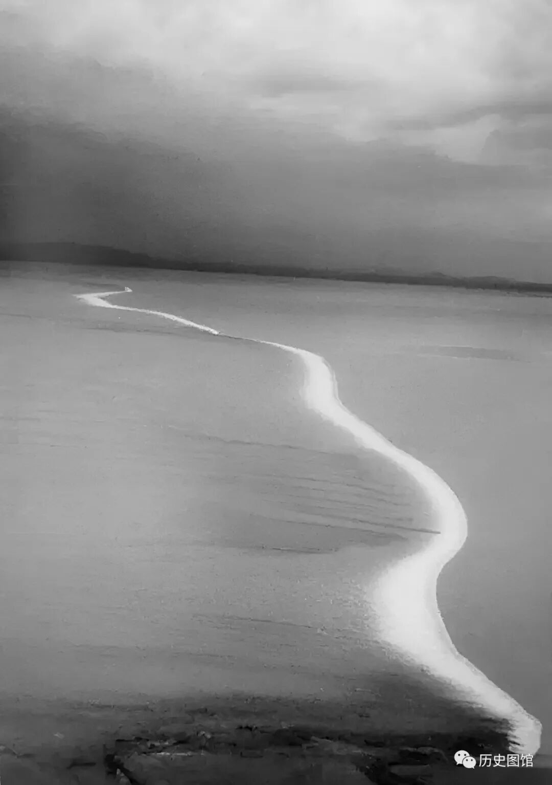 卡斯特尔第一次看到钱塘江大潮,潮头白色的浪翻滚着冲向岸边。他立刻被这壮阔的景象吸引,举起徕卡相机从空中拍下了这一瞬间。