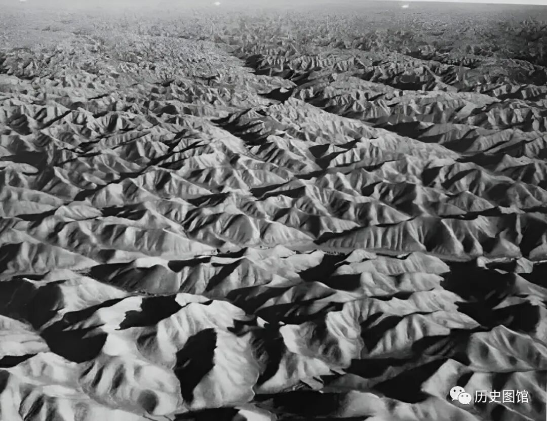 当飞机进入甘肃境内,卡斯特尔看到了非常壮观的一幕。这是位于兰州以北,大约100公里处的甘肃黄土山区。地面上的丘陵高低错落,一座挨着一座,到处沟壑纵横,让人印象深刻。