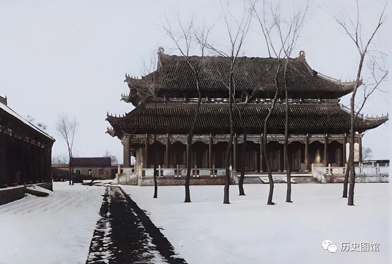 雪景中的吉林市文庙,规格和样式类似皇宫。该文庙始建于乾隆元年(1736年),为中国四大文庙之一。