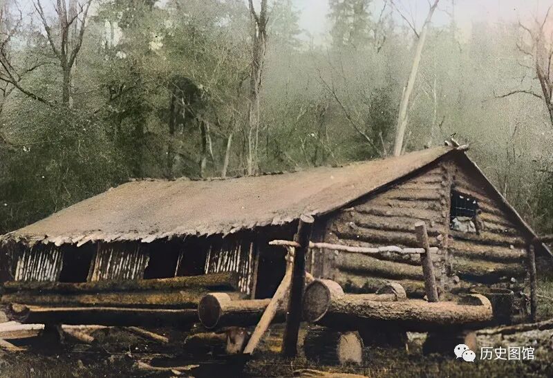 这是山中林场内的一座木屋,全部用木头搭建而成,当地人也称它为“窝棚”。大多是一些伐木工人们居住的房子。房前,堆放着一些木材。还专门为马搭建了木制的马槽,是用一整根木头制作而成。