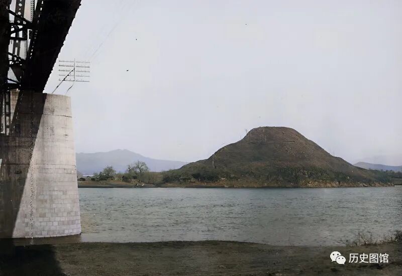 照片中这座圆锥形的山,就是团子山。团子山位于松花江铁桥旁。照片的左侧,能看到铁路桥的局部。