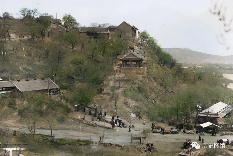 30年代,初春时节的吉林北山风光。北山海拔虽然只有二三百米,不算高,但这里风景秀丽。北山上有汔雪堂、关帝庙、玉皇阁、旷观亭、江山亭、跃进亭、胜利亭等。另外,北山上儒、道、释庙宇分布众多。