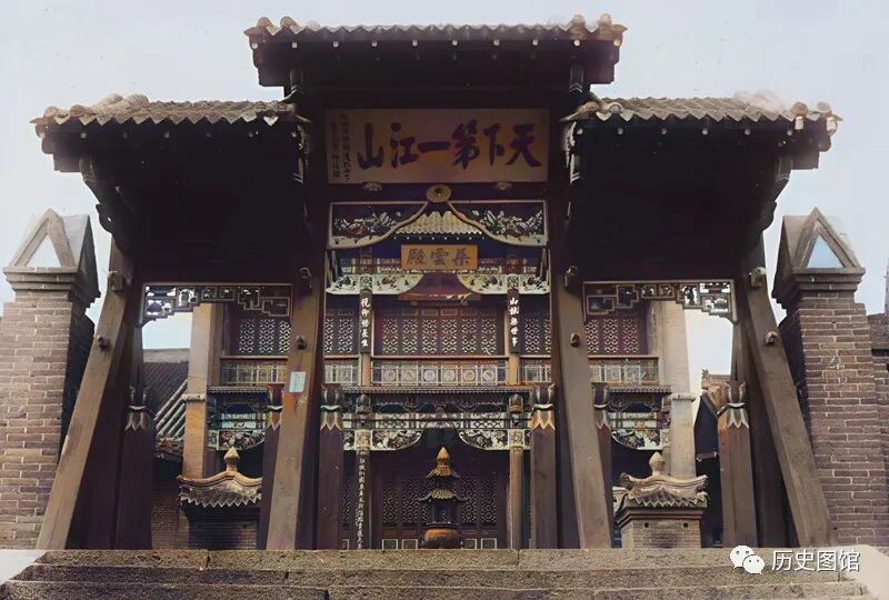 牌楼门楣上方,悬挂着“天下第一江山”的横匾。据说是时任吉林将军的大学士松筠题写的。照片拍摄于1934年。