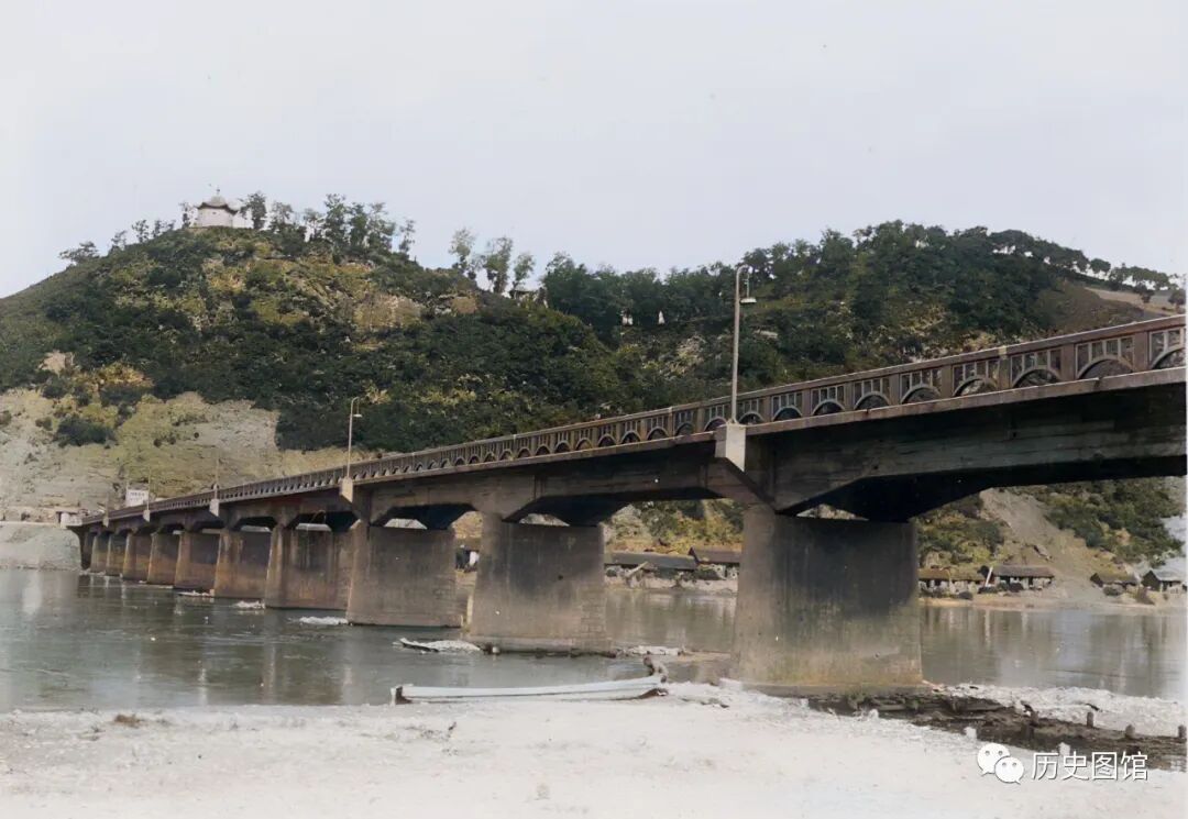 30年代,横跨在浑江上的通化桥。一座大桥,连接了浑江两岸,天堑变通途。桥上车水马龙,桥下混合水静静流淌。岸边有一名船工,正在修葺小船。