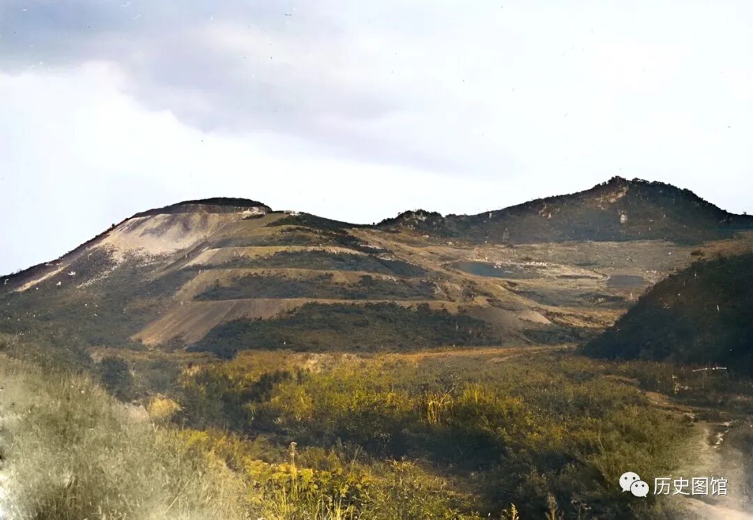 东北矿产资源丰富。位于通化城东的五道江附近,发现了丰富的煤矿,这里盛产优质煤炭。照片中,山坡上能清楚地看到煤矿开采的痕迹。照片拍摄于1939年。