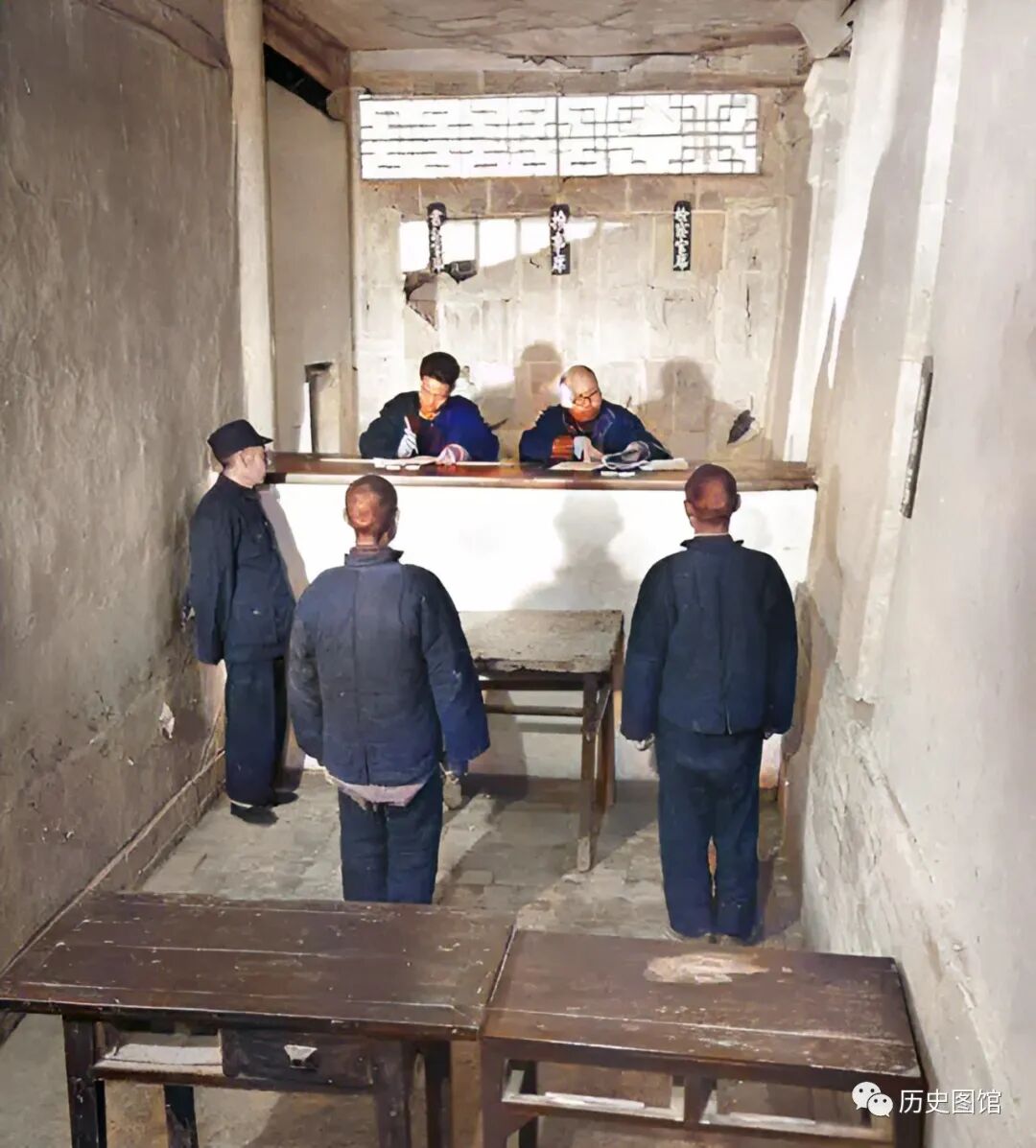 这是当时临潼的一座地方小法庭,在一间狭小的房间里,两名法官正坐在审判席上,两名打官司的男子站在台下,一名法警守在旁边。