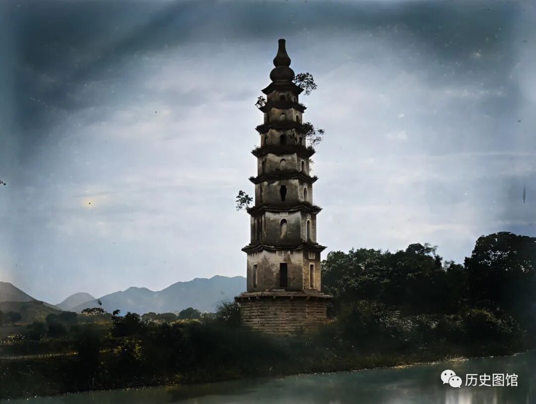 1903年,位于漳州田里庵对岸的罨云塔。罨云塔也叫港口塔,其建造年代不详。古塔呈圆锥形,上小下大,直插云霄。