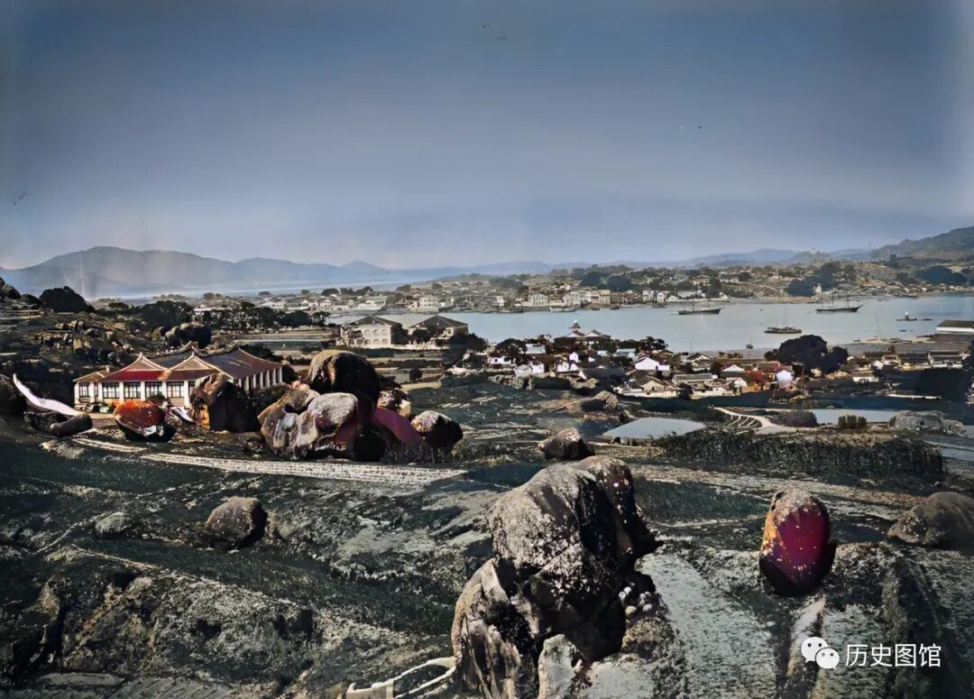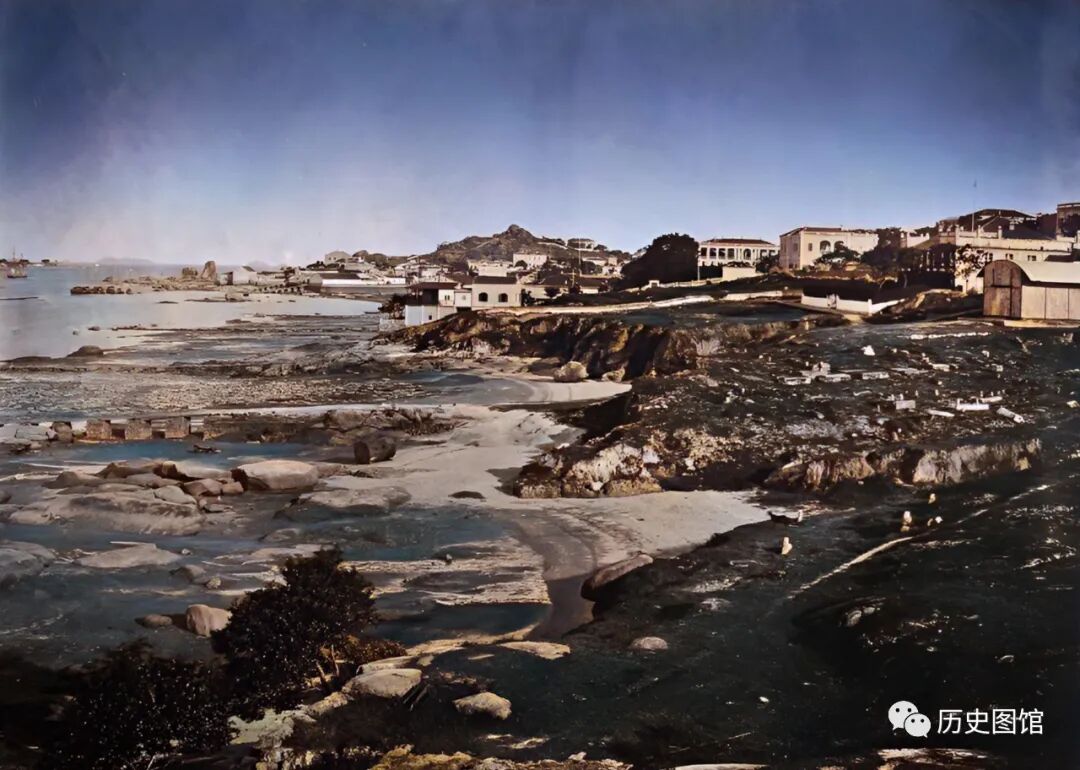 1903年,查尔斯·威廉·华生来到了漳州的海边。在这里,他看到让他印象深刻的海滨美景。由于海水常年的侵蚀,海岸线呈现除了犬牙交错般的景象,岸边有很多欧式建筑。海边浅水区中,还能看到修建的简易栈道。