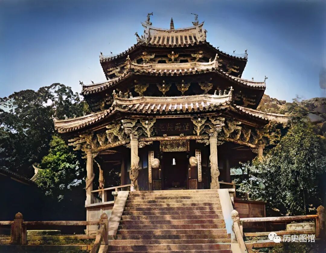 这张照片,查尔斯·威廉·华生标注的是漳州法雨频施亭。其实,这座建筑并不在漳州,而在厦门南普陀寺内,法雨频施亭也就是现在的大悲殿。