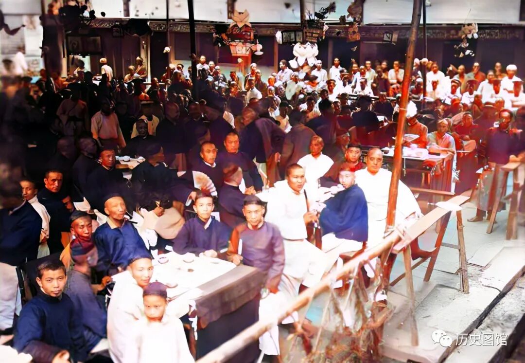 民国时期,乐山当地一位德高望重的老人,八十大寿的祝寿宴席场景。现场张灯结彩、高朋满座,人们聚集搭起的凉棚下,共同祝福老人福如东海寿比南山。