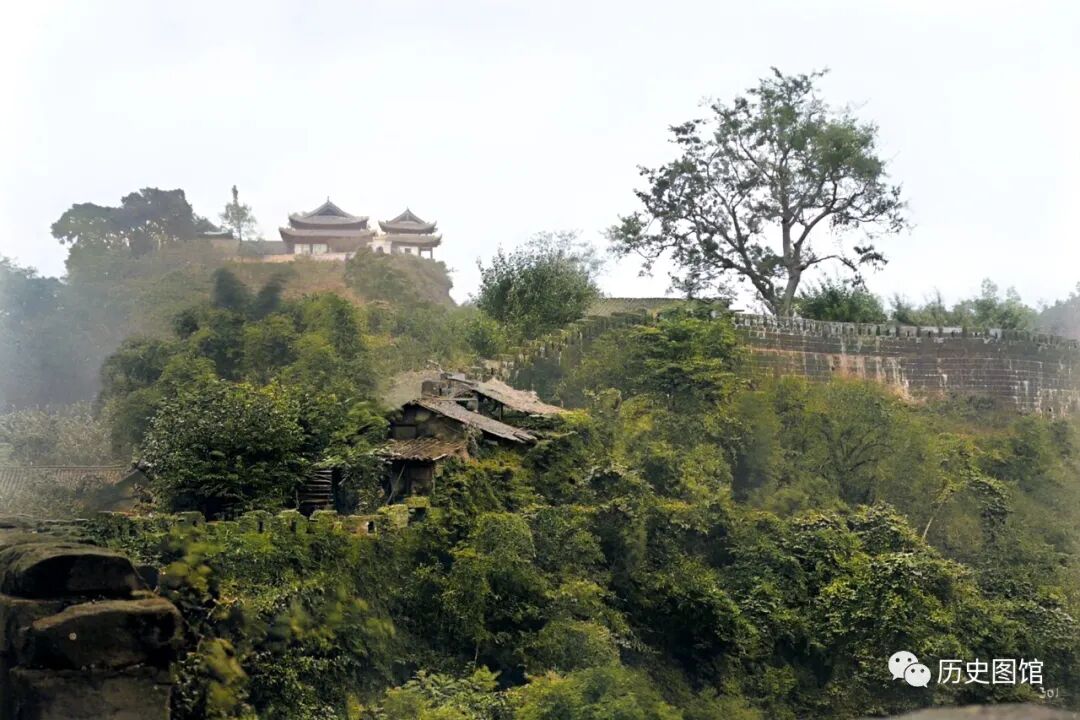 这张照片拍摄于乐山市郊高标山上的老霄顶。山上修建有万寿宫,万景楼、灵官殿以及其他楼台亭阁,形成较大规模的古建筑群。