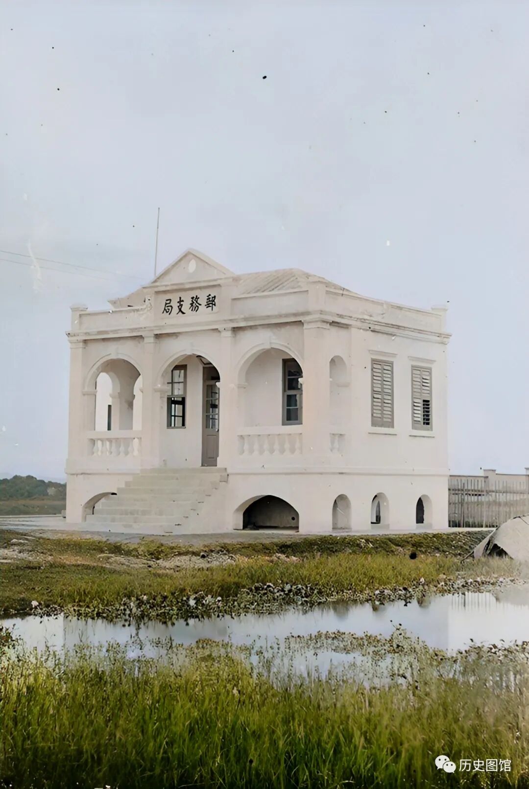 邮政局大楼的建筑风格,也是欧式,门楣上方有“邮务支局”四个大字,旁边立有一根旗杆。这样的外观设计,放到现在也不过时,很有气派。