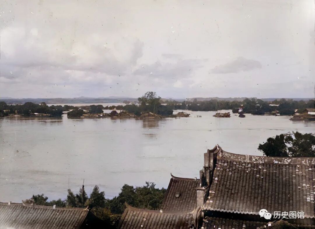 1915年,广西南宁发洪水的景象。昔日繁华热闹的城区和村庄,此刻全都淹没在洪水之中。大部分房屋只露出了屋顶。目光所及之处,到处是浑浊的洪水。这场持续了一个多月的洪水,给南宁造成了巨大的经济损失。