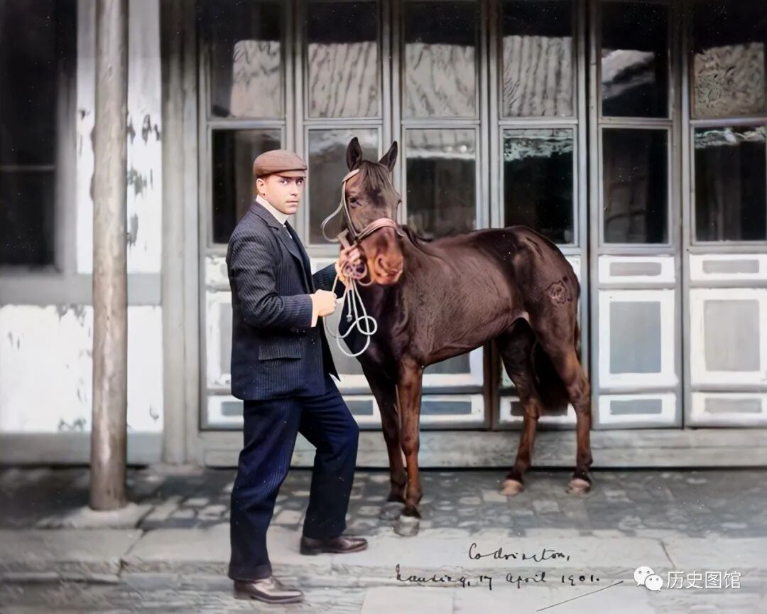 在过去,马匹是当地主要的交通和运输工具。海关人员办事也经常骑马。海关的马匹有专人饲养和调配。照片右下角,还能看到一只犬。