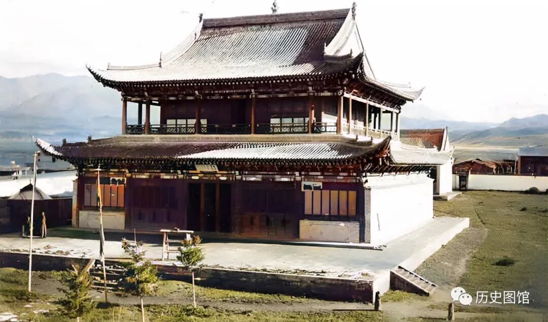 这是位于新疆霍诺海的一座喇嘛庙。霍诺海,即现在的察布查尔锡伯自治县。这座喇嘛庙,规模宏大,院内几座大殿非常气派。