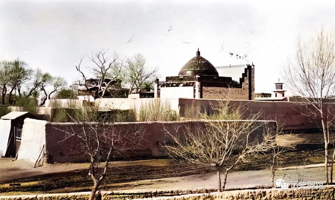 这是1910年的哈密回王陵。回王陵,是清代新疆哈密历代回王及其家族的陵园,俗称"回王坟"、"王爷坟"。