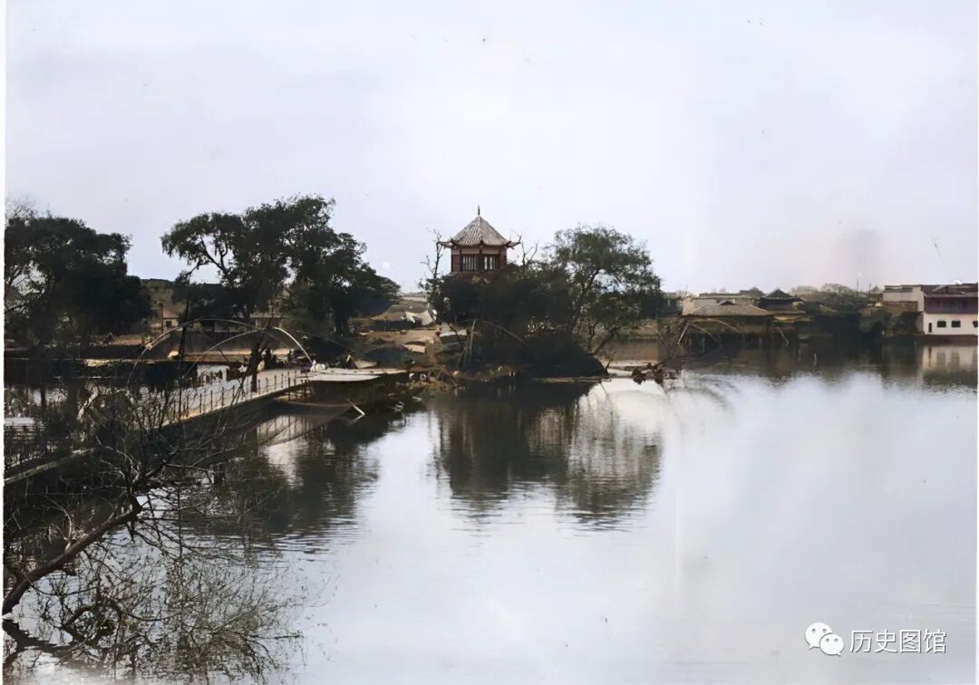 这张照片,拍摄于南昌的东湖公园。公园里湖水清澈,湖中有三座小岛,岛中的亭子叫“中山亭”,岸边绿树如荫,停泊着几艘小船。照片拍摄于1930年。
