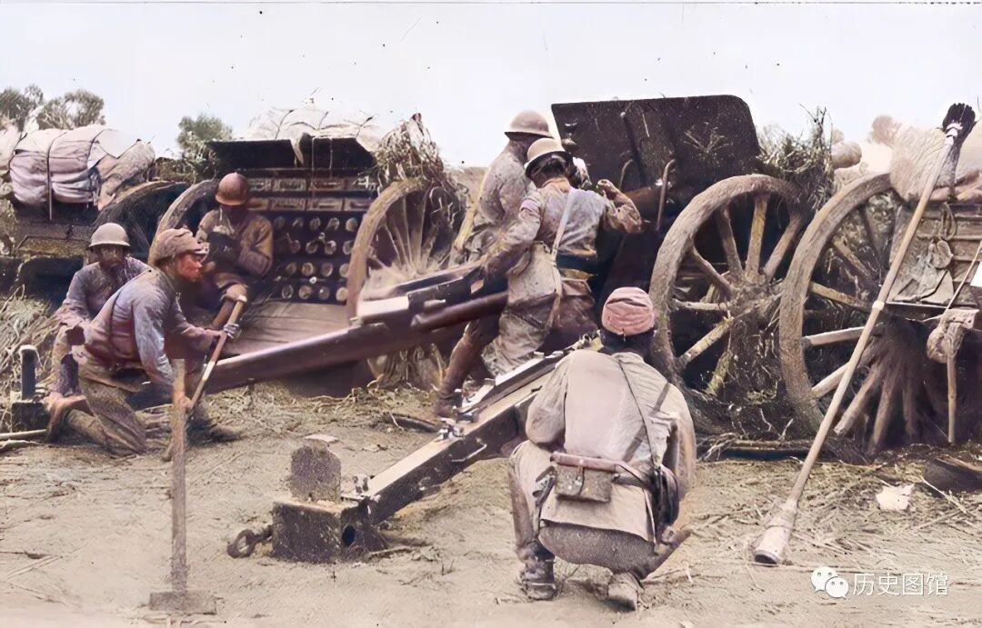 中国军人凭借勇猛顽强的精神,击毙了500多名日军。但是,正定保卫战最终还是失败了,日军占领了正定。这张照片拍摄于10月8日,河北正定城外,日军的炮兵部队正在朝城内发射炮弹。