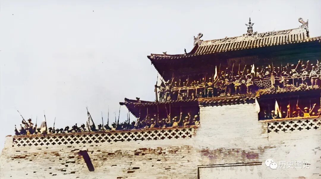 9月16日,河北涞源失守。日军占领涞源城后,站在城楼上举手高呼。