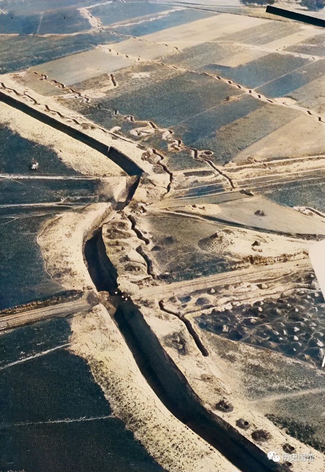 日军占领河北保定后,从飞机上对保定进行了拍摄。在保定城外广阔的地面上,是中国军队花费了两年多时间修建起来的壕沟和战壕等防御工事。
