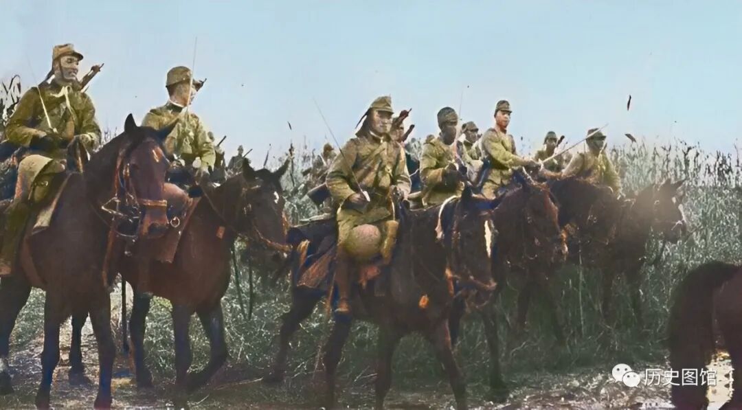 9月14日,河北郊外,日军一支骑兵部队在高粱地里行军。日军对河北的进犯期间,大量老百姓辛苦种下的庄稼被日军损毁,颗粒无收。