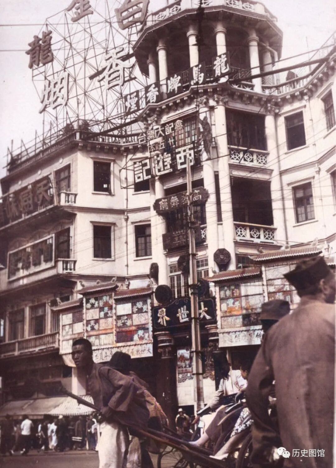 这是上海大世界,建于1917年。这里是上海最繁华的地方之一,内设剧场、电影场、书场、杂耍台、商场、中西餐馆等各种设施,也是上海规模最大的娱乐场。