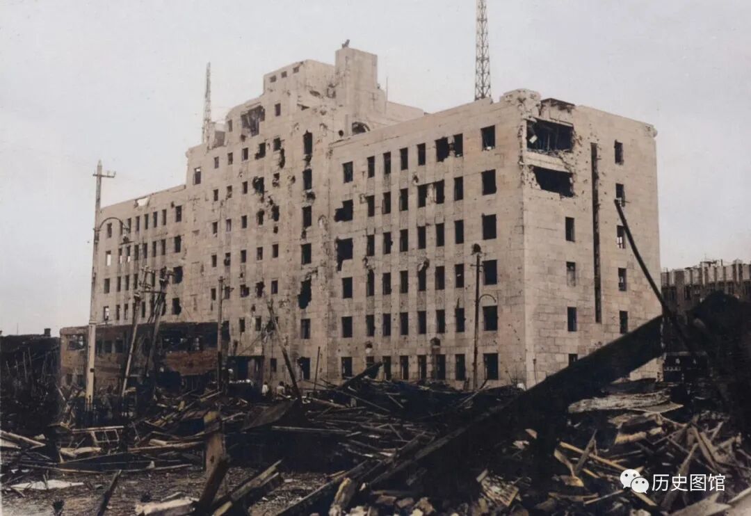 这栋大楼,就是位于闸北上海北站内的铁路管理局。刚刚经历了战火的洗礼,矗立在断壁残垣中。