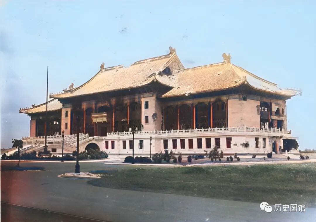 这是当时位于江湾的上海市政府大楼。市政府大楼高四层,远远望去,巍峨壮观。该楼1933年建成,著名建筑设计师董大酉,按照传统宫殿的形式设计。