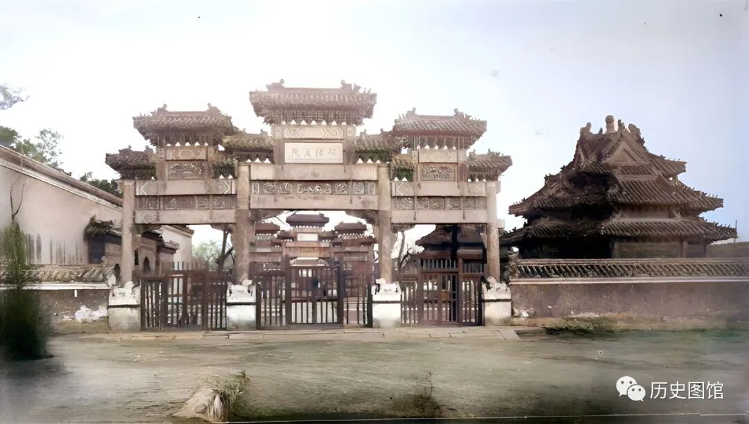 1890年的大高玄殿牌楼,位于景山前街的西边。挨着牌楼的建筑叫习礼亭,现已不复存在。大高玄殿始建于明嘉靖二十一年(1542年),是明清时期皇家的御用道观。