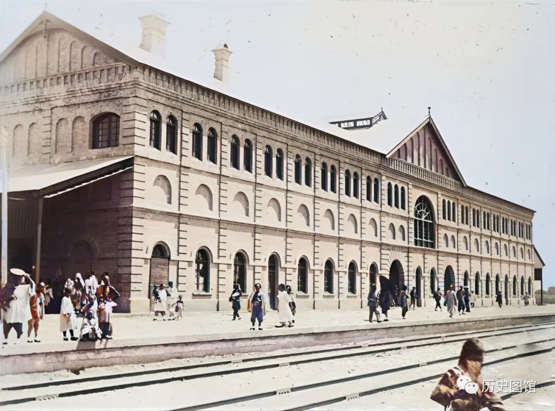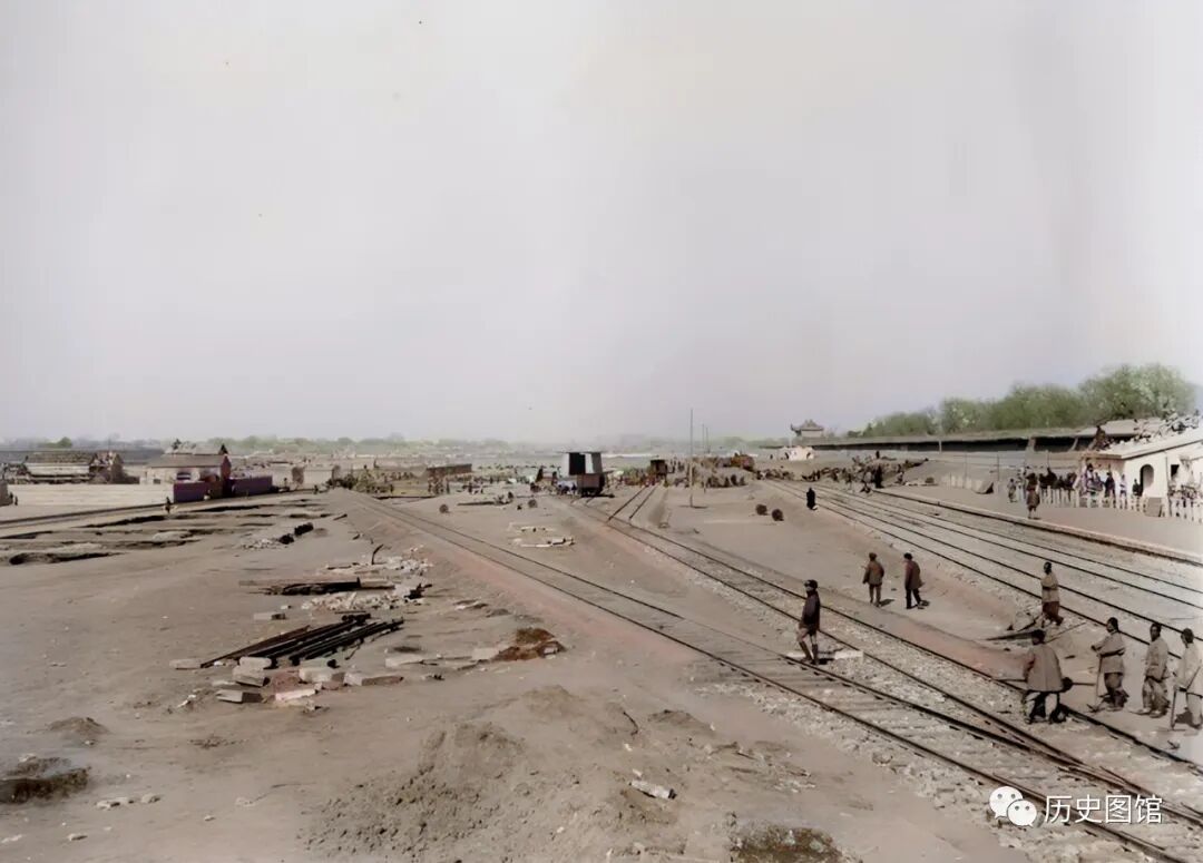 1898年的北京马家堡火车站,车站位于右安门和永定门之间、马家堡村北,是京奉铁路上的一个的站点,更是北京最古老的火车站。照片中的火车站站房,为欧式建筑,站前铺设有数条铁轨,站台上候车的乘客也不少。