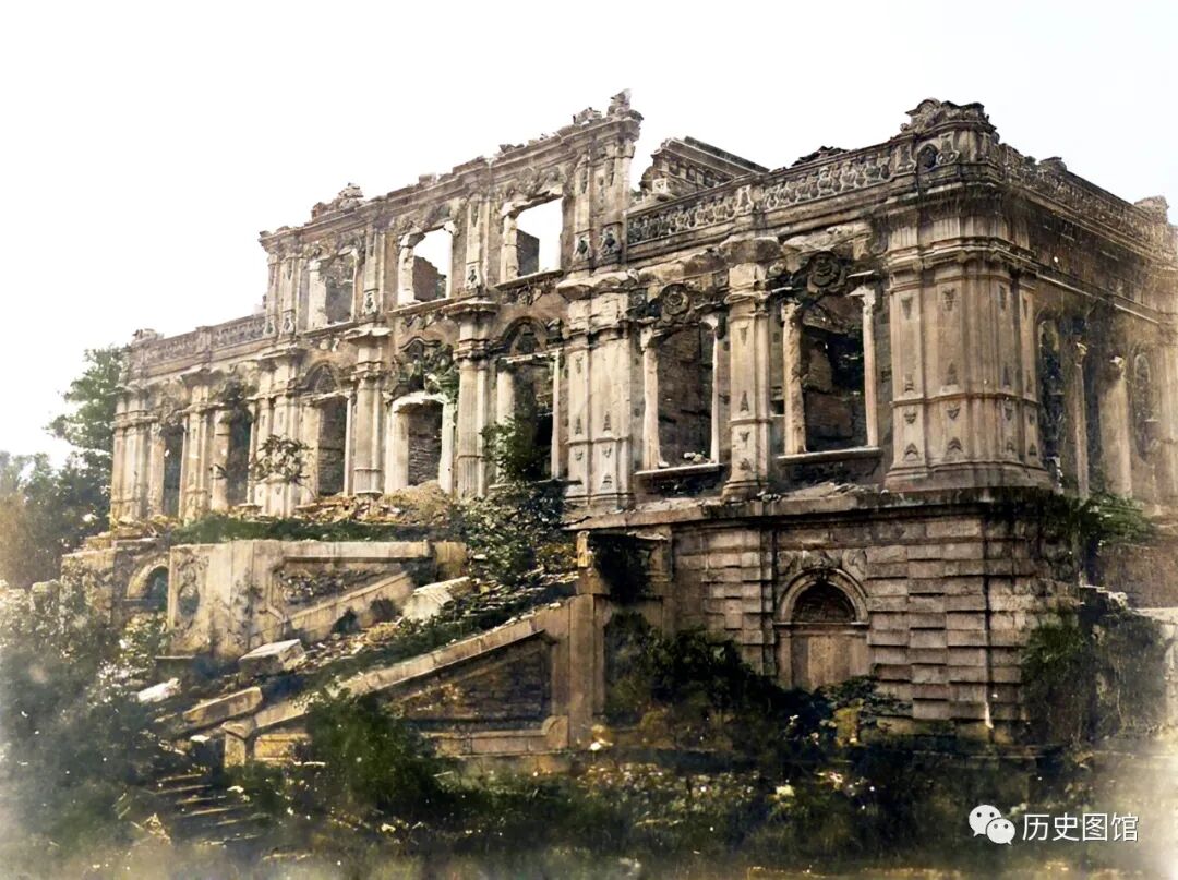 这是北京圆明园内一处废墟。从建筑的外观和装饰看,被焚毁之前,它是何等的恢弘壮观。